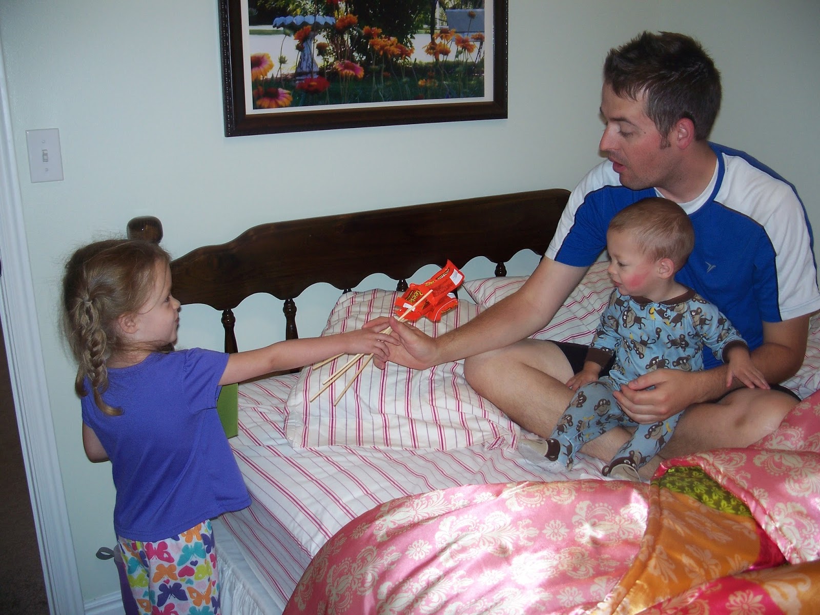 They also had a great time giving Daddy his card- and especially pointing out what they had colored for him!As another surprise, the kids and I made a yummy surprise breakfast for Daddy and Grandpa Harrison! We hope you had a grand Father's Day, Daddy! We love you so much and had a great time making your day special!!!
